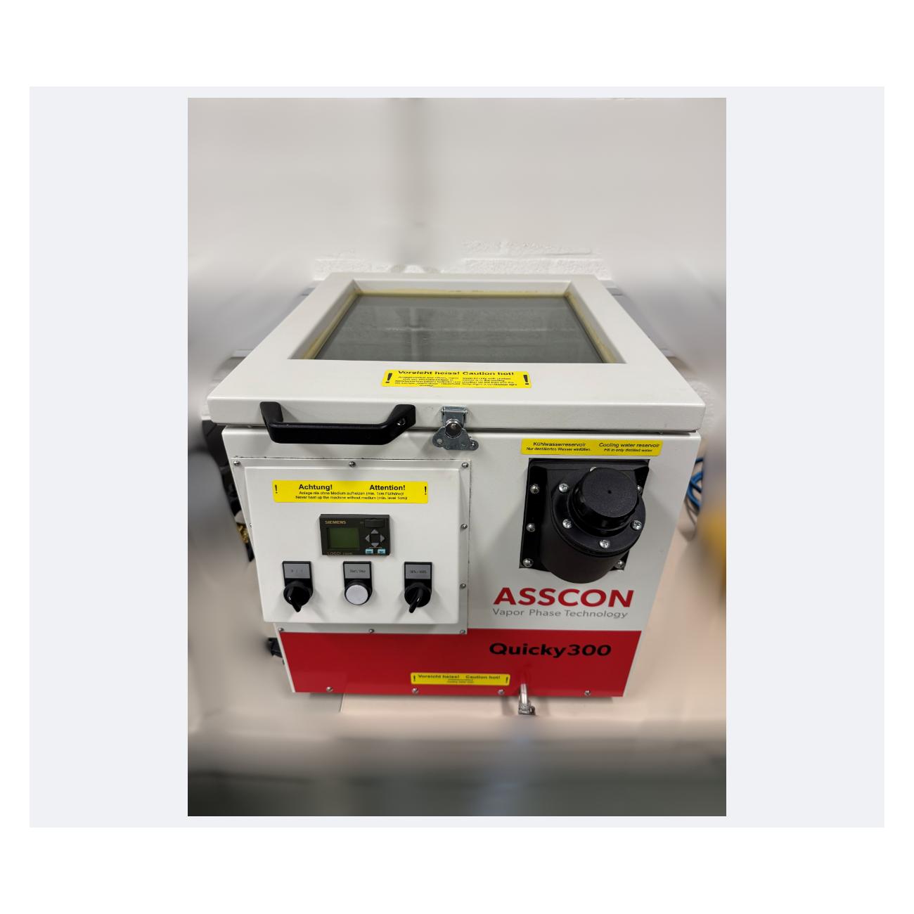 The main target areas of application for the vapor phase soldering system Quicky 300 series are labs, and prototype and small series manufacturing operations. Due to the compact dimensions and the fact that no stationary supply systems are needed for operation, it is perfect for trouble-free application at many different sites; 240V power supply are all that is needed.