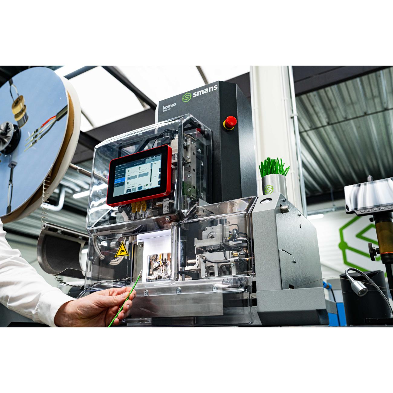- Optional Barcode Integration: A barcode scanner can be optionally integrated to use crimp height and pull-out force measuring devices such as Komax 341 or Q1210 on up to 20 crimpers.