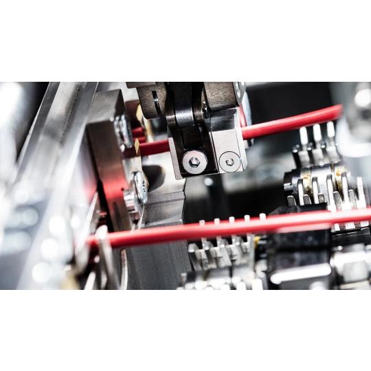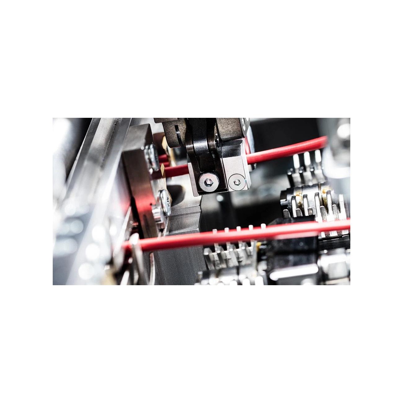 • Traitement précis avec une unité de coupe de haute qualité : l’unité de coupe avec trois paires de lames traite parfaitement les sections de 0,5 à 6 mm² en séquence. Des lames de haute qualité et durables permettent des vitesses de traitement élevées.