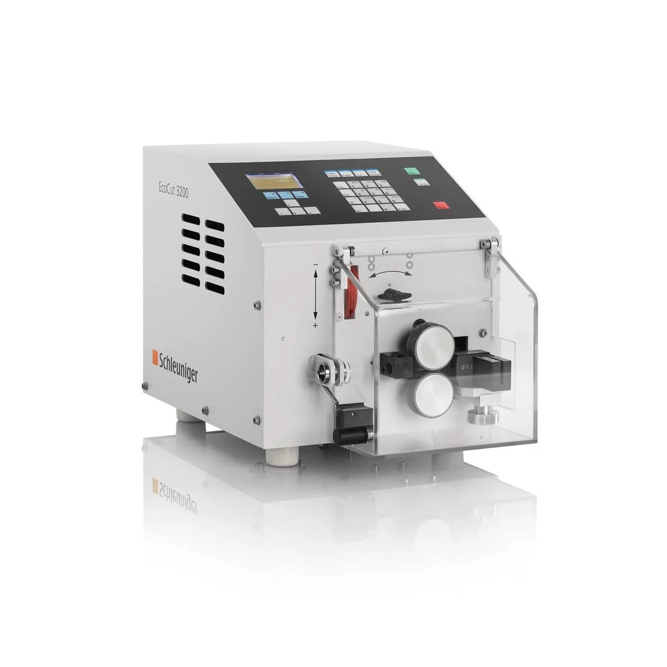 De EcoCut 3200 is de automatische stripmachine van Schleuniger. De machine maakt het mogelijk om kabels, draden of slangen nauwkeurig op lengte te snijden en kan volledig worden geconfigureerd volgens de behoeften van de klant.