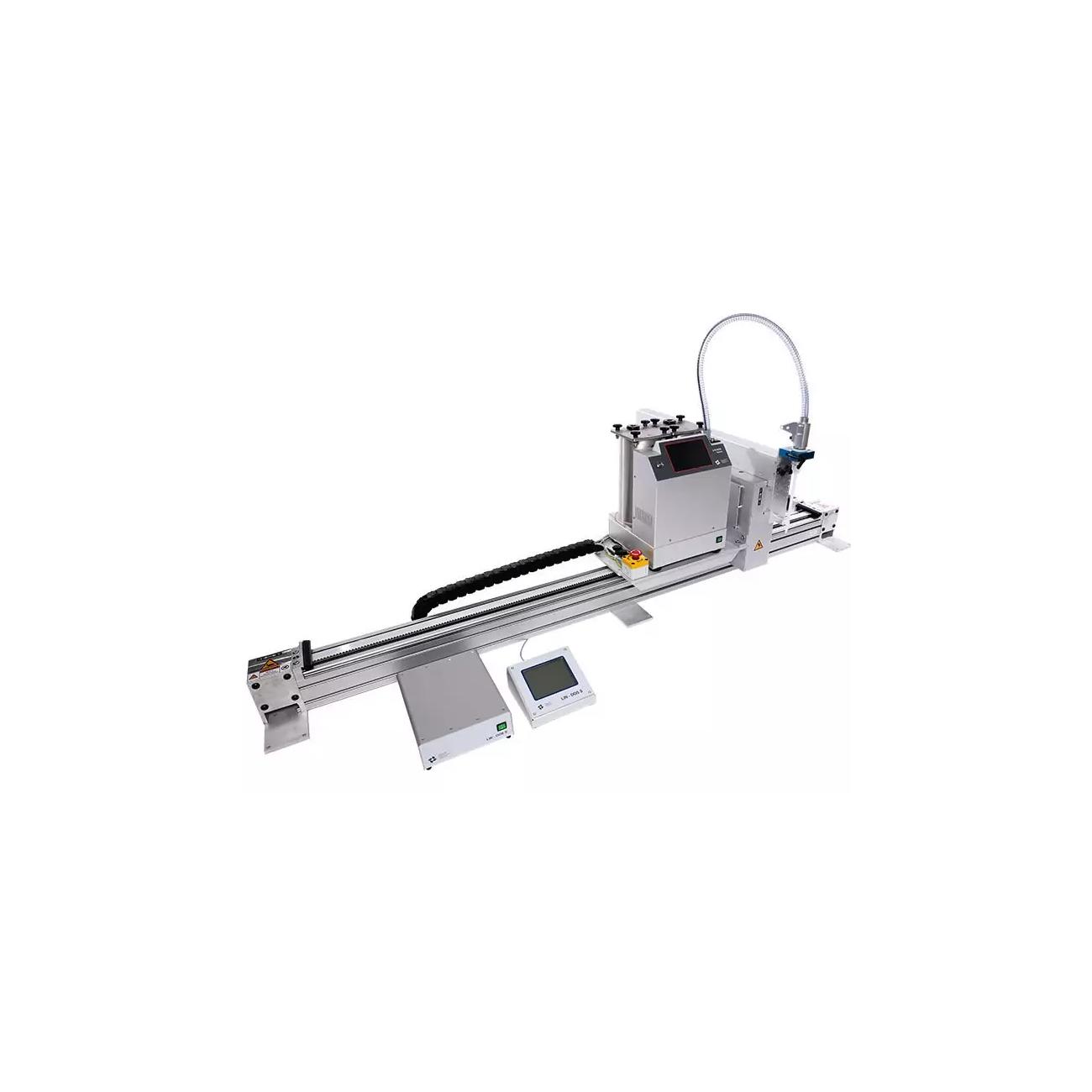 De LIN-DOS SW is een lineaire drieassige unit voor het automatisch gieten van rails, vooral LED-lichtstrips, in combinatie met de meng- en doseerapparaten 2-K-DOS T of 2-K-MiniDOS. Het apparaat bestaat uit een rail, de X-as, waarop een slede beweegt die de meng- en doseersystemen draagt, die direct langs de te gieten lichtstroken worden bewogen om te doseren. Een aan de slede bevestigde arm die kan worden bewogen in de lengte, Y-as en hoogte, Z-as, draagt de doseerkop van de doseerapparaten. Dit betekent dat meerdere aangrenzende LED-rails automatisch kunnen worden gegoten. De snelheid van de wagen, de rij- en doseerafstanden of -punten worden geprogrammeerd en bediend met een menugestuurd aanraakscherm. De dosering wordt geregeld door de LIN-DOS SW. De snelheid van de trolley en de doseersnelheid kunnen nauwkeurig op elkaar worden afgestemd. Optioneel kan de LIN-DOS SW worden uitgerust met een dubbele trolley voor 2 doseersystemen. Samen met de 4-K adapter kunnen tot 3 verschillende mengsels worden gedoseerd, bijvoorbeeld mengsels met verschillende verstrooiings- of troebelingsvullers voor LED strips.