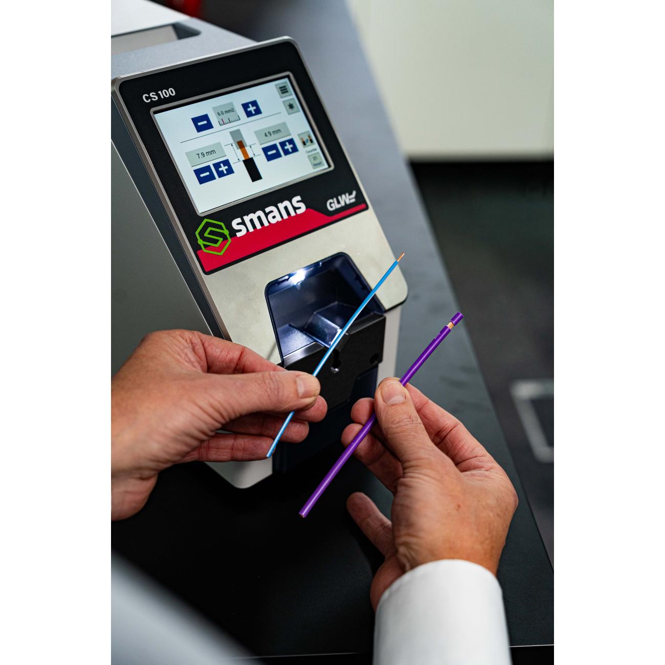 Het toestel is uitgerust met een intuïtief touchscreen waarop alle instellingen eenvoudig kunnen worden ingevoerd en opgeslagen. Zowel volledige als gedeeltelijke strips zijn mogelijk, met striplengtes van 2 tot 20 mm, en een cyclustijd van slechts 0,3 seconden.